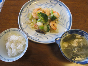 本日のメインは「ブロッコリーとえびの炒め物」です。