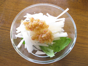 次は「大根サラダ(りんごドレッシングがけ)」です。