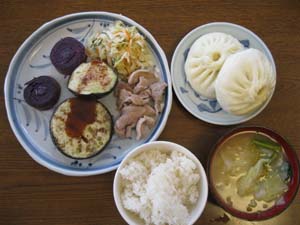 今日は新しく始まったお野菜の「米なす」と「紫芋」がお昼に出ました。↓
